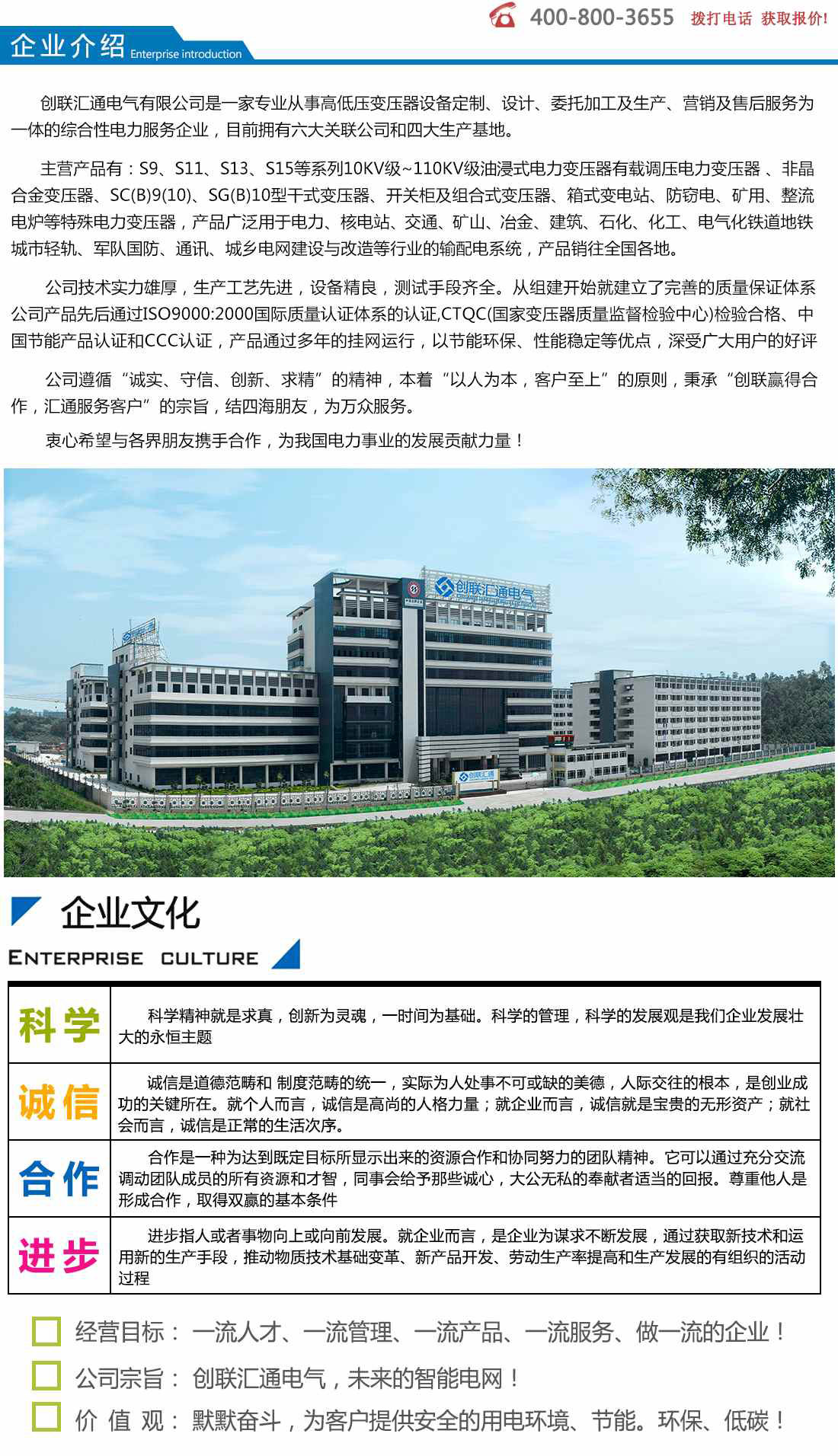 創聯匯通主營產品有:S11(13)、S20(22)新能效及SH15系列10KV級~110KV級油浸式電力變