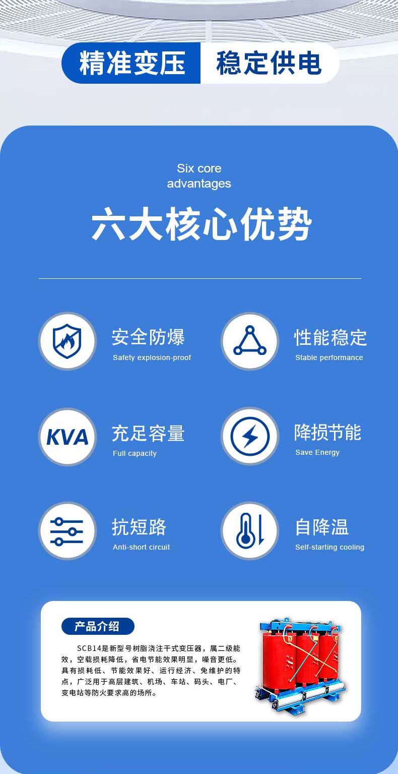 壓器、有載調(diào)壓電力變壓器、非晶合金變壓器、SC(B)10 (13)、SG(B)10(13)及SC(B)14(18)新能效系列干式變壓器、開(kāi)關(guān)柜及組合式變壓器、箱式變電站及防竊電、礦用、整流、電爐等特殊電力變壓器。產(chǎn)品廣泛用于電力、核電站、交通、礦山、冶金、建筑、石化、化工、電氣化鐵道、地鐵、城市輕軌、軍隊(duì)國(guó)防、通訊、城鄉(xiāng)電網(wǎng)建設(shè)與改造等行業(yè)的輸配電系統(tǒng),熱銷全國(guó)。