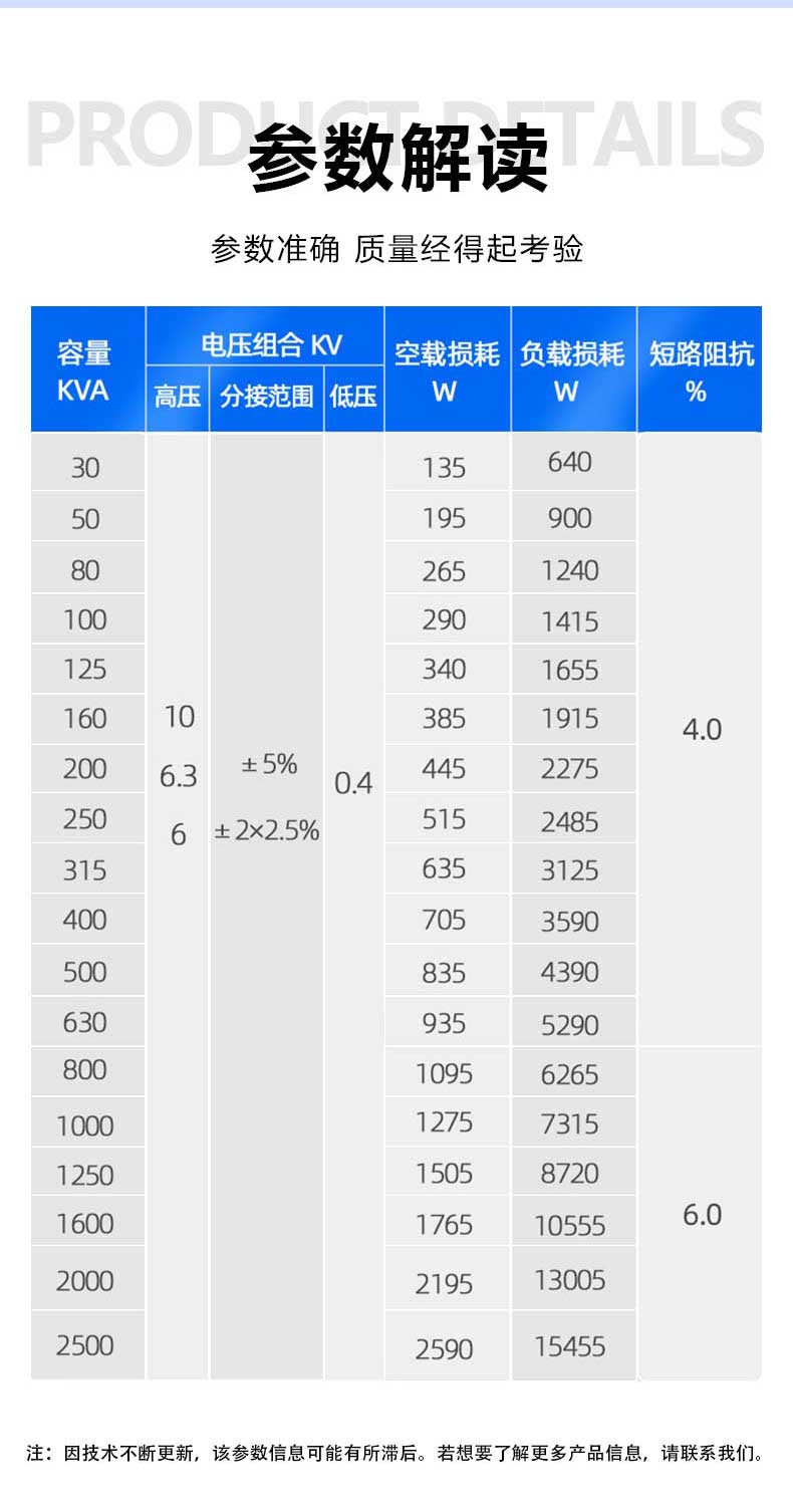 答 01全新硅鋼片噪音小,損耗低,運(yùn)行穩(wěn)定,壽命長(zhǎng)02純銅線圈過(guò)載力強(qiáng)無(wú)氧銅線,穩(wěn)定性更強(qiáng),導(dǎo)電性能更好,抗短能力更強(qiáng)03浸水運(yùn)行IP68防護(hù)等級(jí),浸水運(yùn)行穩(wěn)定可靠04穩(wěn)定可靠全密封,全絕緣的接線方式,高壓側(cè)帶熔斷保護(hù)...