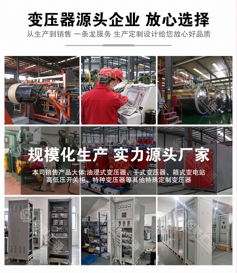 壓器、有載調壓電力變壓器、非晶合金變壓器、SC(B)10 (13)、SG(B)10(13)及SC(B)14(18)新能效系列干式變壓器、開關柜及組合式變壓器、箱式變電站及防竊電、礦用、整流、電爐等特殊電力變壓器。產品廣泛用于電力、核電站、交通、礦山、冶金、建筑、石化、化工、電氣化鐵道、地鐵、城市輕軌、軍隊國防、通訊、城鄉電網建設與改造等行業的輸配電系統,熱銷全國。